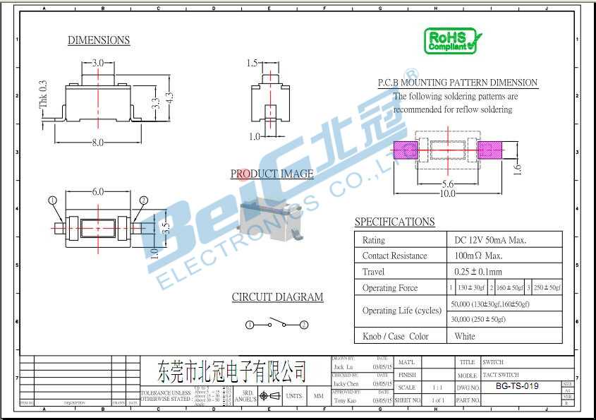產品名稱:TS-019輕觸開關