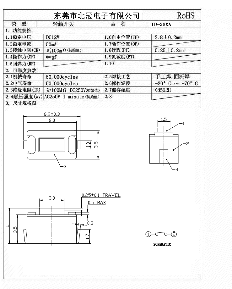 3.Lnsulation Resistance: ≥100mΩ DC250V