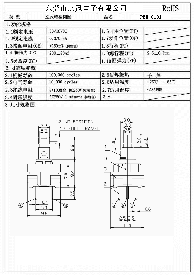 產品名稱:PBM-0101按鍵開關