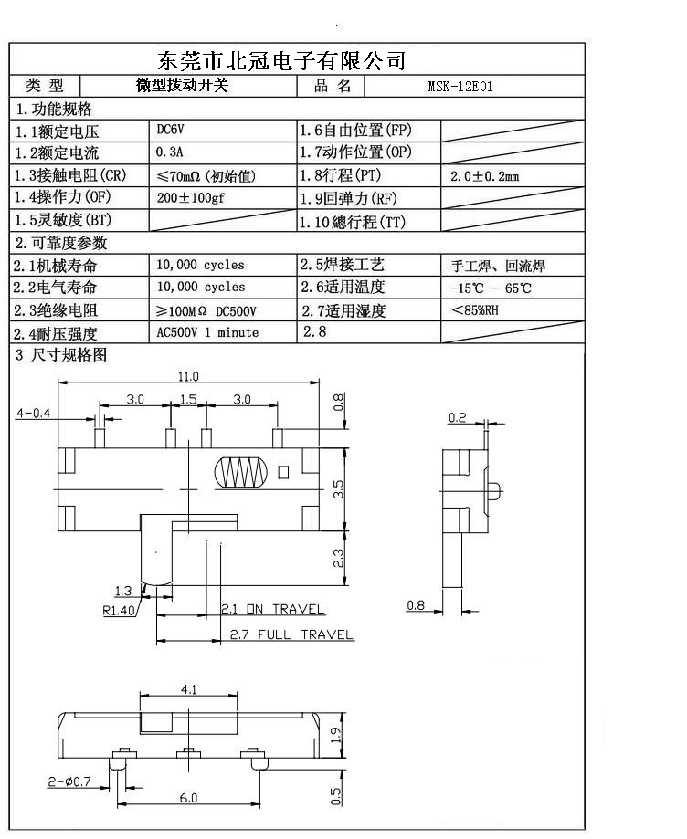 7. Operating Life : 10,000Cycles